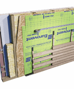Eurovent HOME PRO er en trelags, høydiffusjonsåpen og vindtett membran med dobbel klebekant (SYSTEM SK2) for rask og sikker montering. Den er utviklet for bruk både på skråtak og fasader i trehus, murbygg, modul- og elementkonstruksjoner, samt CLT- og passivhusprosjekter.